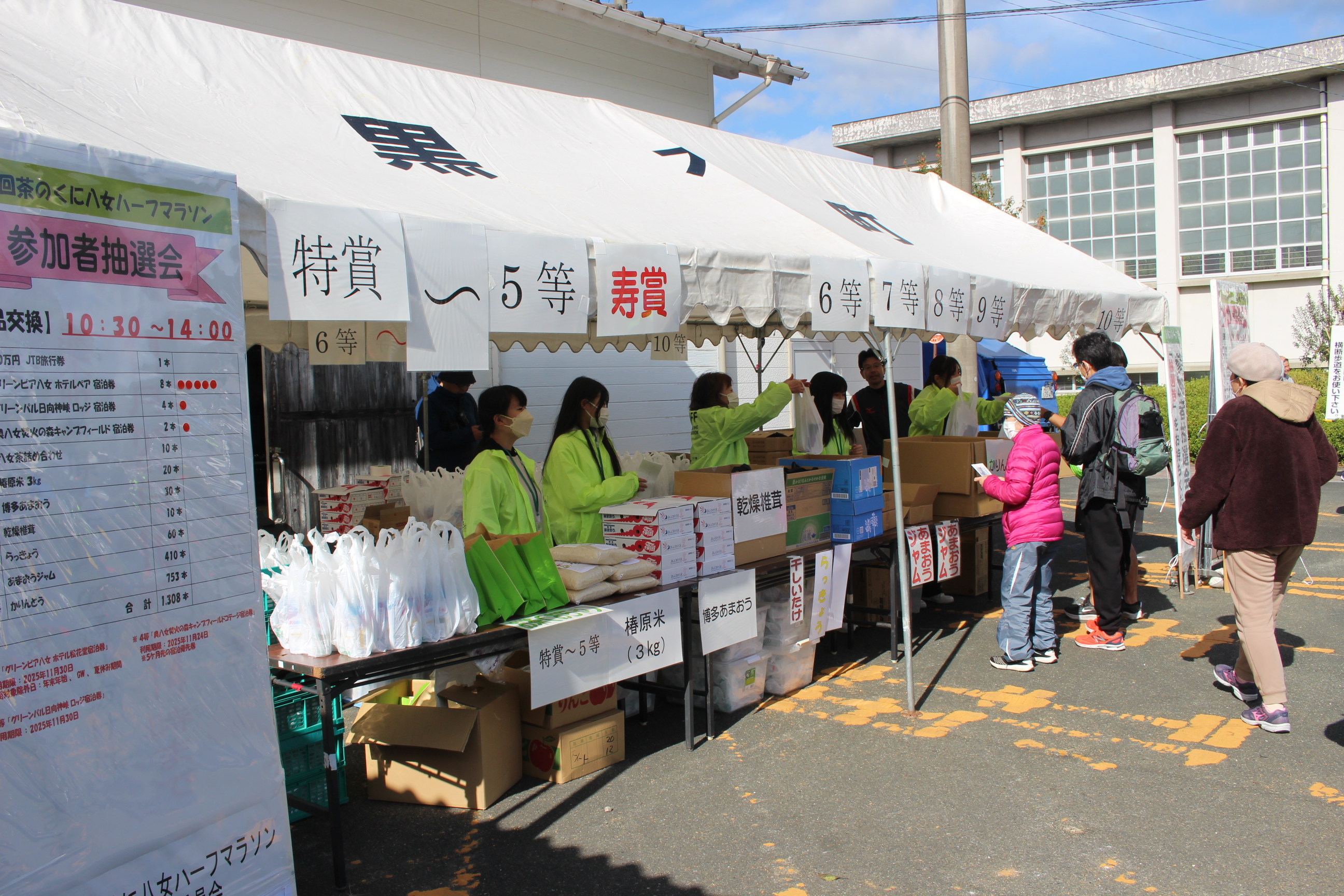 八女茶などの地元特産品のほか、市内観光施設の宿泊券・10万円分の旅行券をはじめとする参加者抽選会もあります。